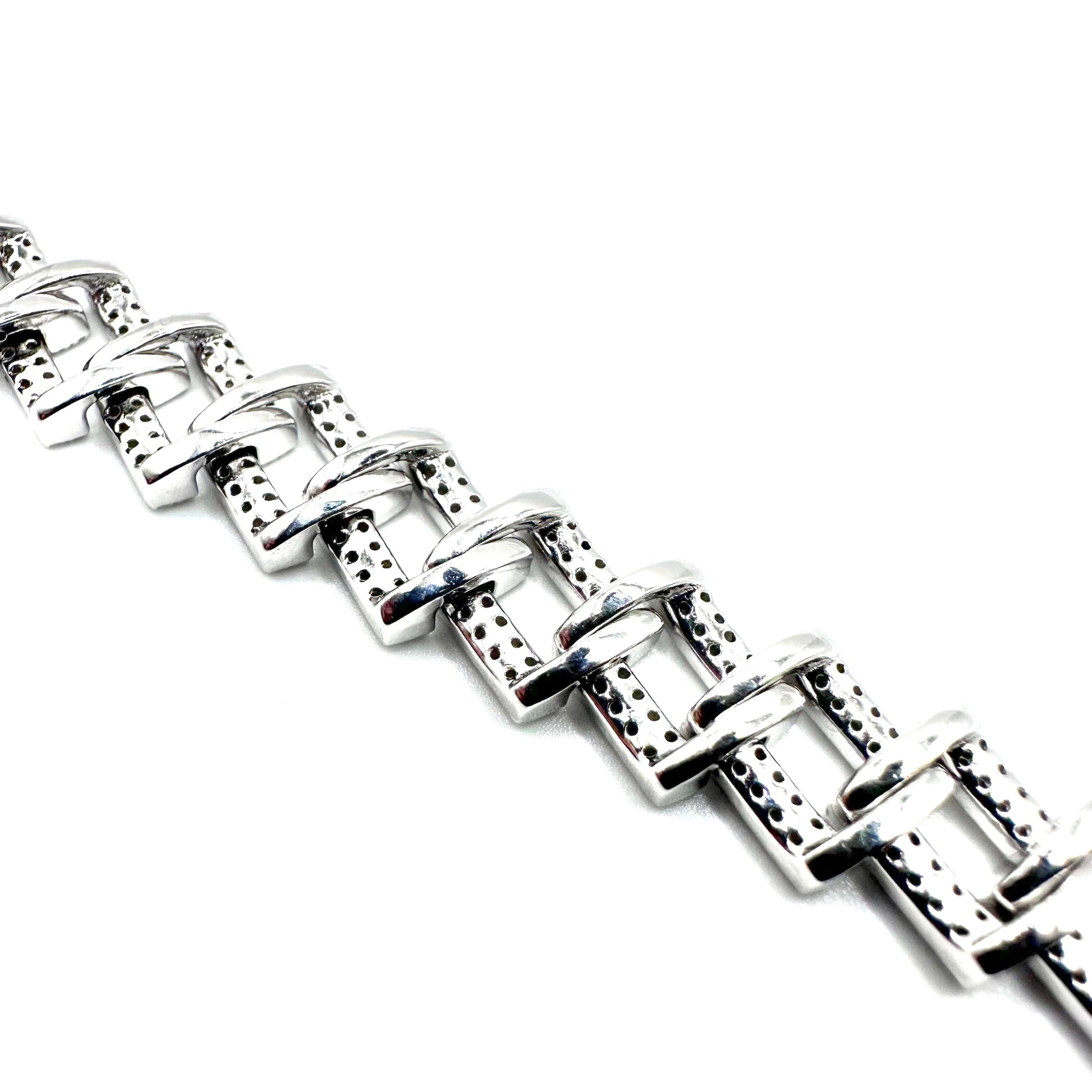 This contemporary Cuban link style bracelet is set with two carats of GRA certified Moissanite. The bracelet’s length is 7.5 inches / 19cm.